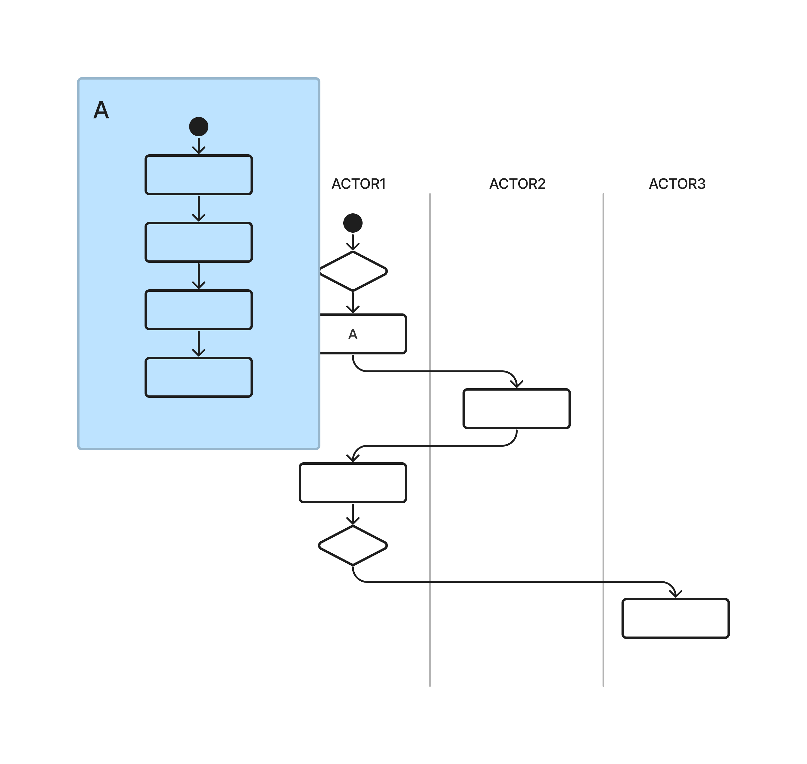 만약에 A의 과정의 세부 내용과, 다른 과정들의 세부 내용들도 모두 묘사해버리면 한 눈에 볼 수 없어지게 된다.