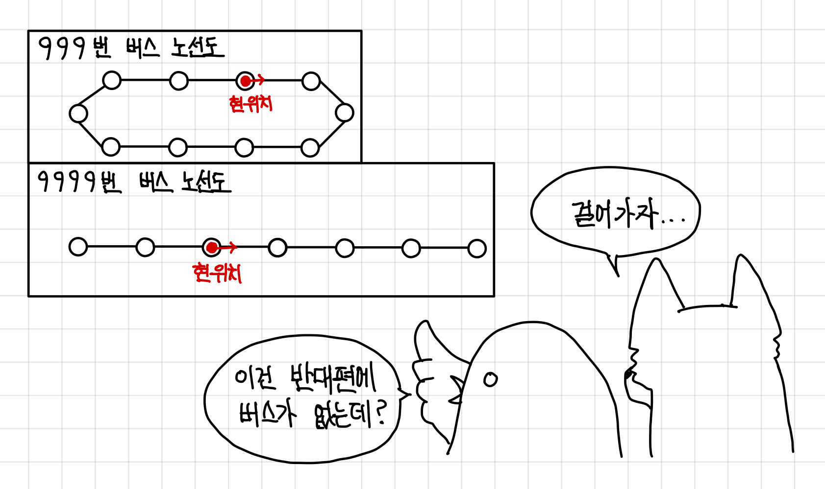 버스를 탄다고 했을 때, 보통 반대 차선으로 가면 똑같은 버스가 있기 마련인데 가끔 편도로 가는 버스들이 있다.