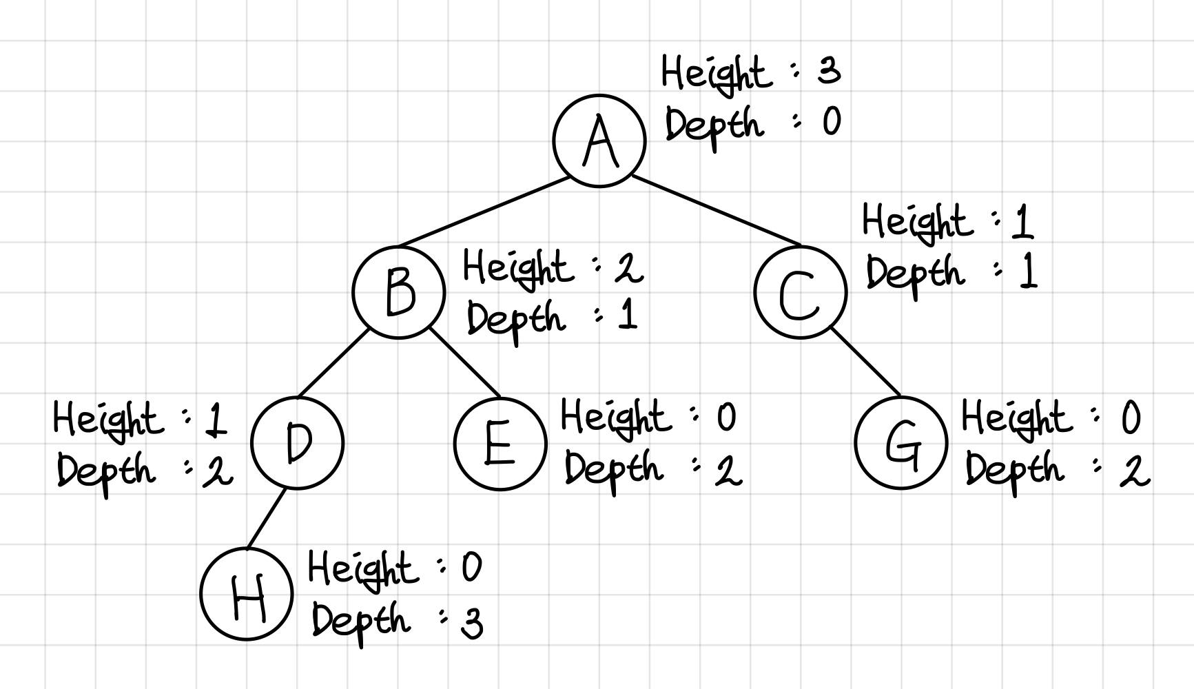 루트에서 특정 노드까지의 간선(Edge)수를 말한다. - 높이(Height)