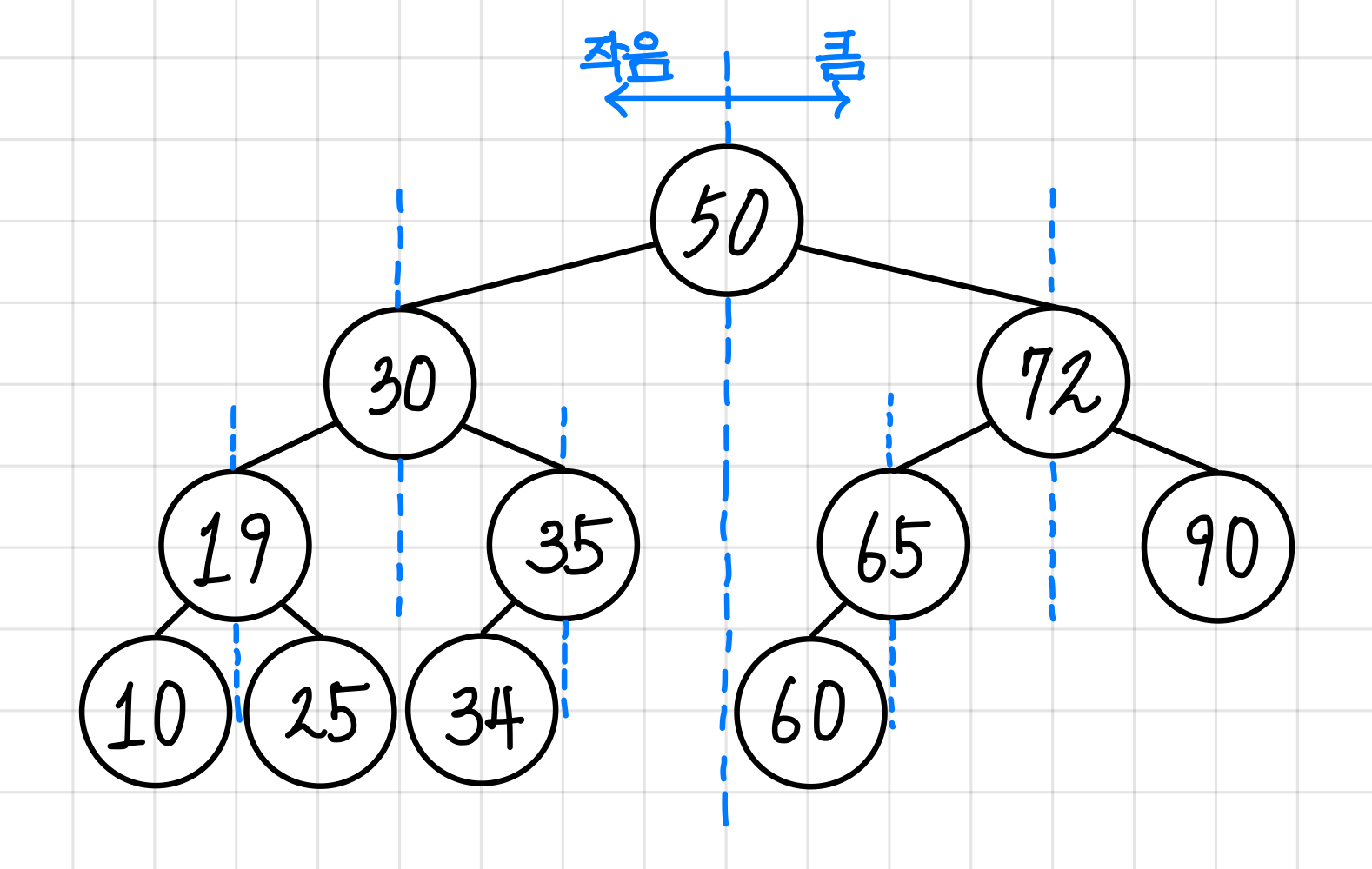 이진 탐색과 이진 트리가 합쳐졌다고 생각하면 쉽다.