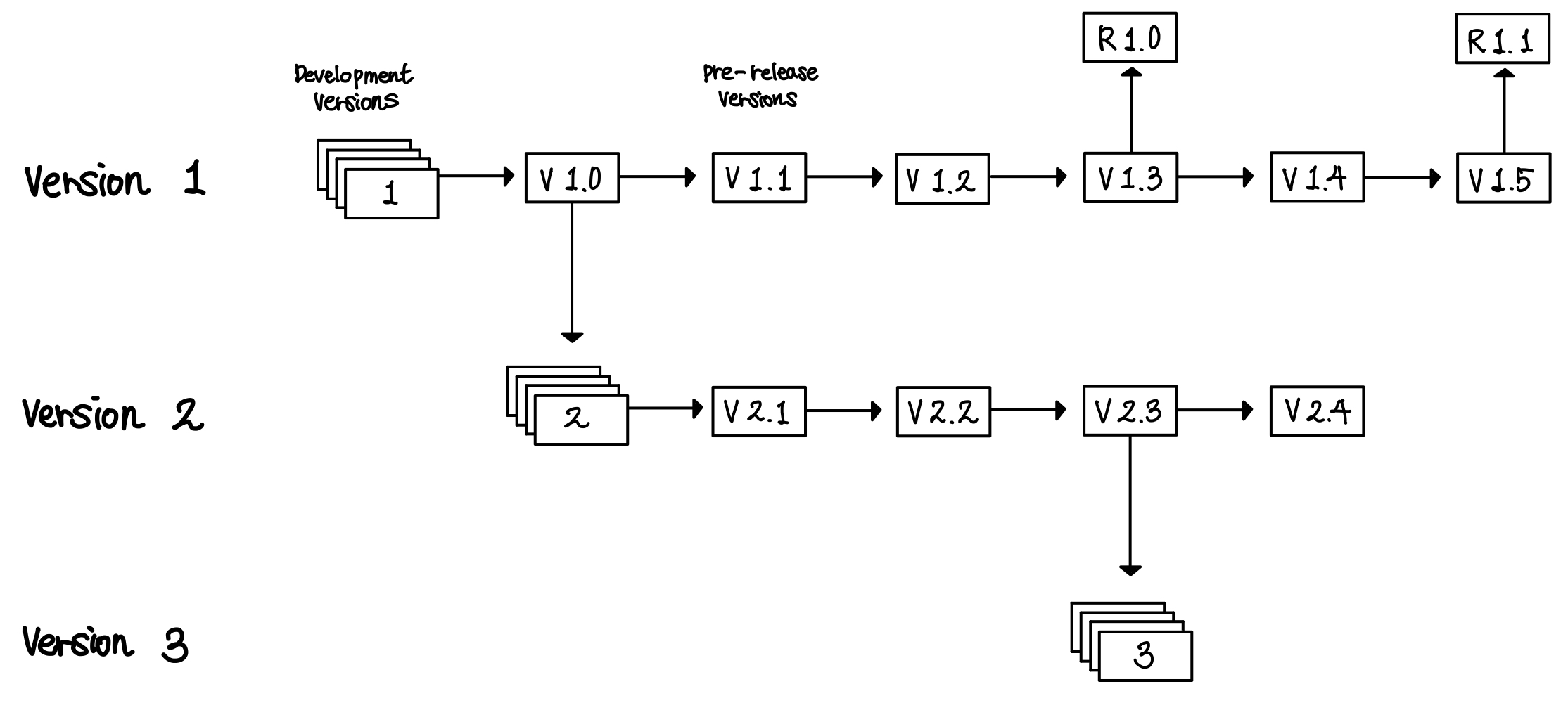 1.0부터 시작해서 1.1로 간다음에 브랜칭한다.