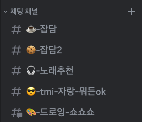 기존의 잡담방은 사실 이미 알고 있는 사람들의 모임장과 다름이 없습니다. 기존에 연이 없는 사람들은 대화에 끼기가 조금 어려운 것도 있습니다. 그래서 tmi 채널을 만들었지만, 여전히 참여율은 저조한 상황입니다.