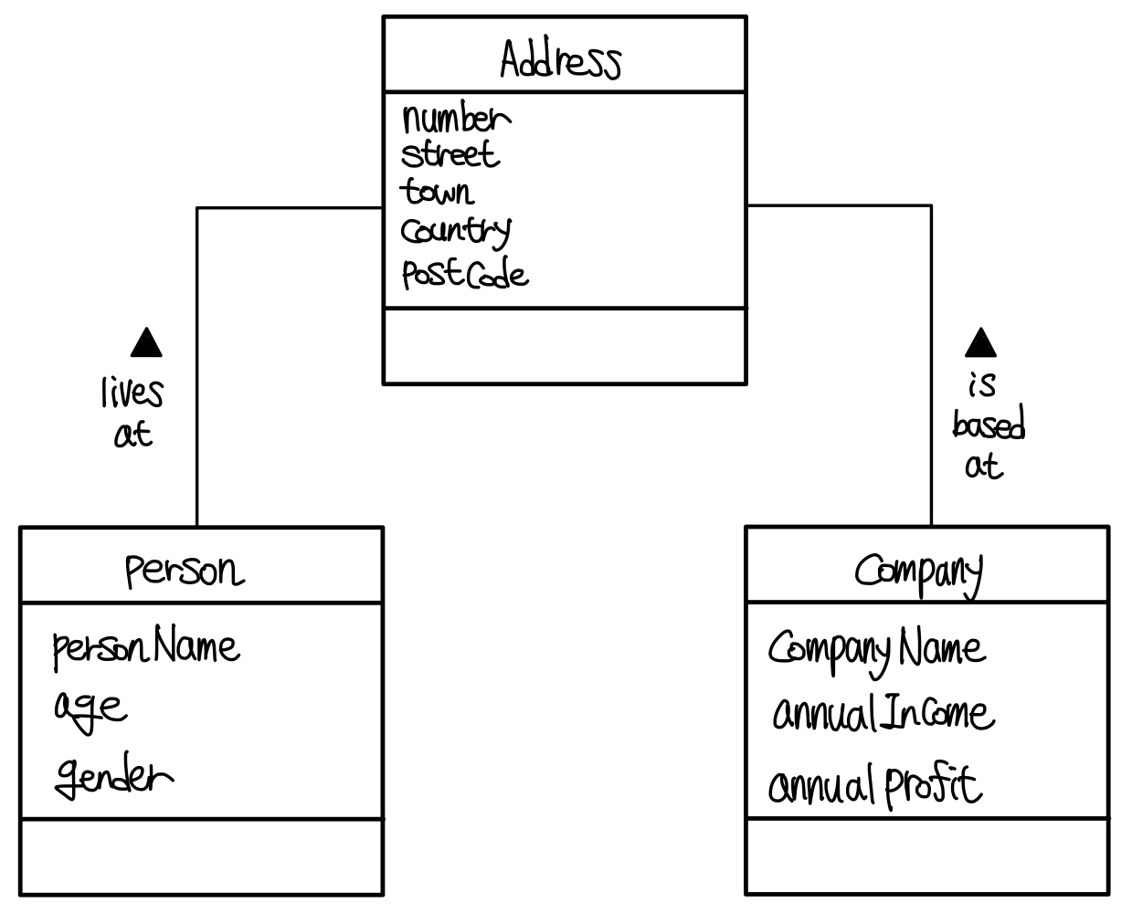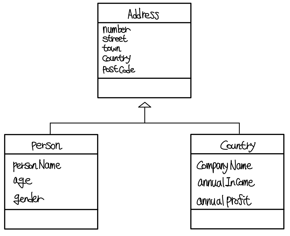 Address(주소 클래스)를 Person(사람 클래스)과 Company(회사 클래스)가 상속을 받고 있다. ▼