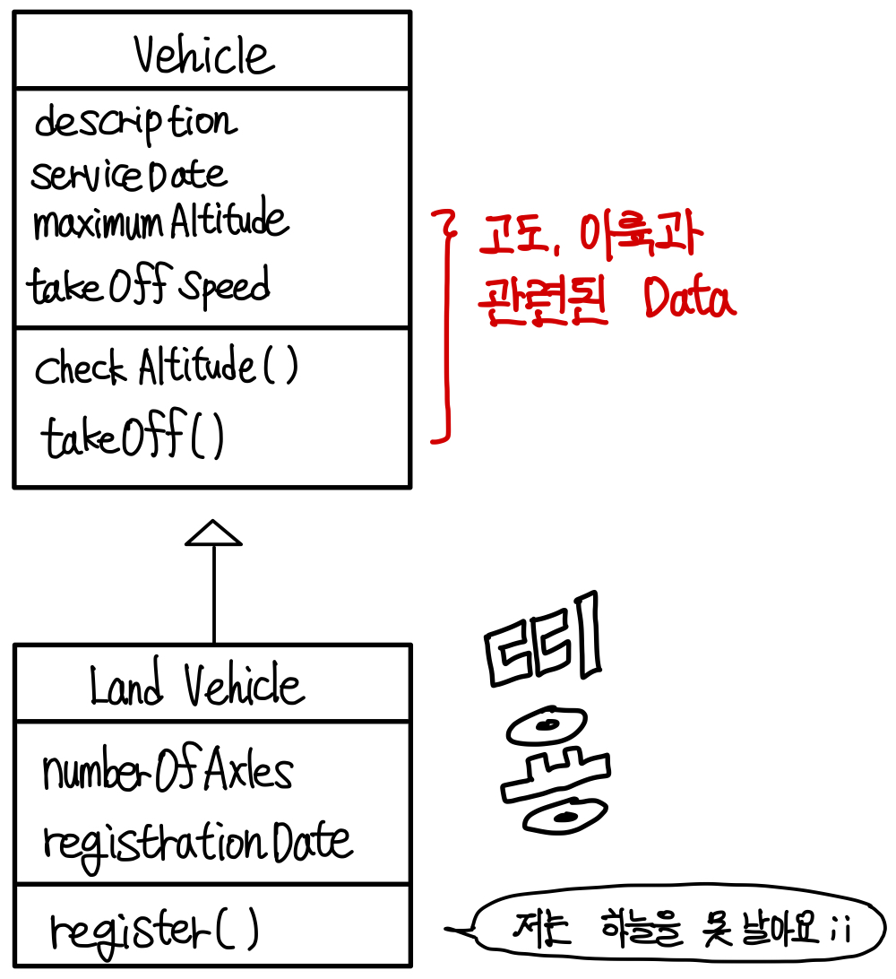 LandVehicle에 필요없는 Attribute와 Operation이 무려 4개나 있다.