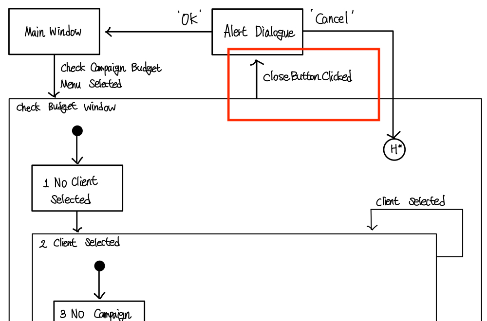 1 | 클라이언트가 선택되었다. | 캠페인 dropdown을 지운다. 캠페인 dropdown을 로딩한다. 예산 텍스트 필드를 지운다. 체크 버튼을 비활성화한다. 창을 활성화한다. |