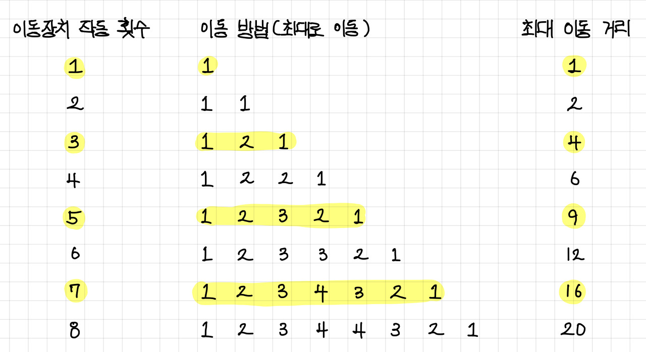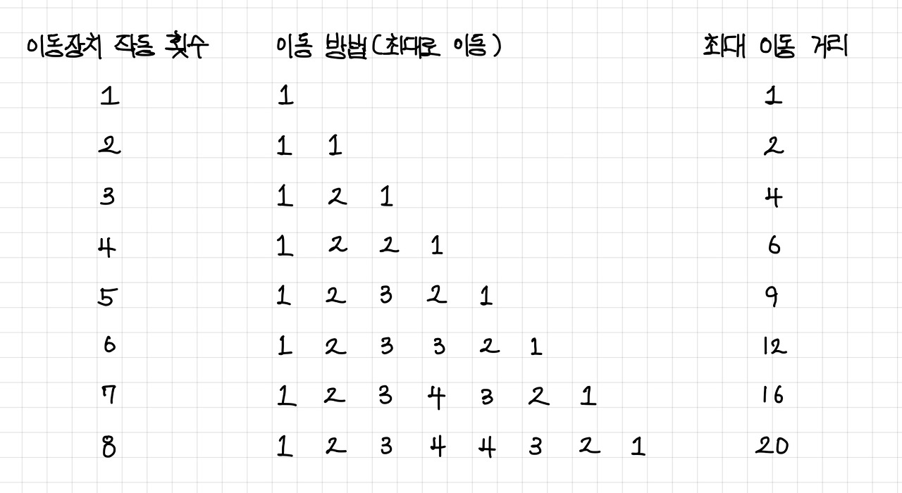 하지만 이동 방법을 잘 보면 최대 이동 거리의 특징을 알아 낼 수 있다.▼